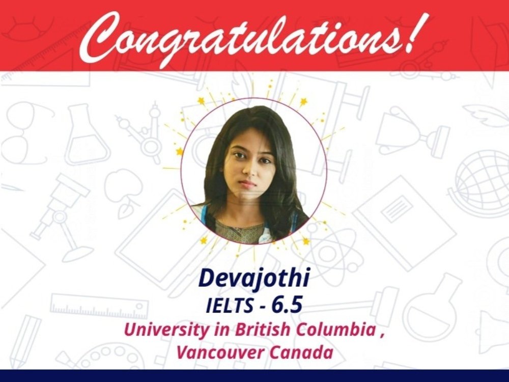 - Devajothi, one of our Student scored 6.5 in IELTS exam.