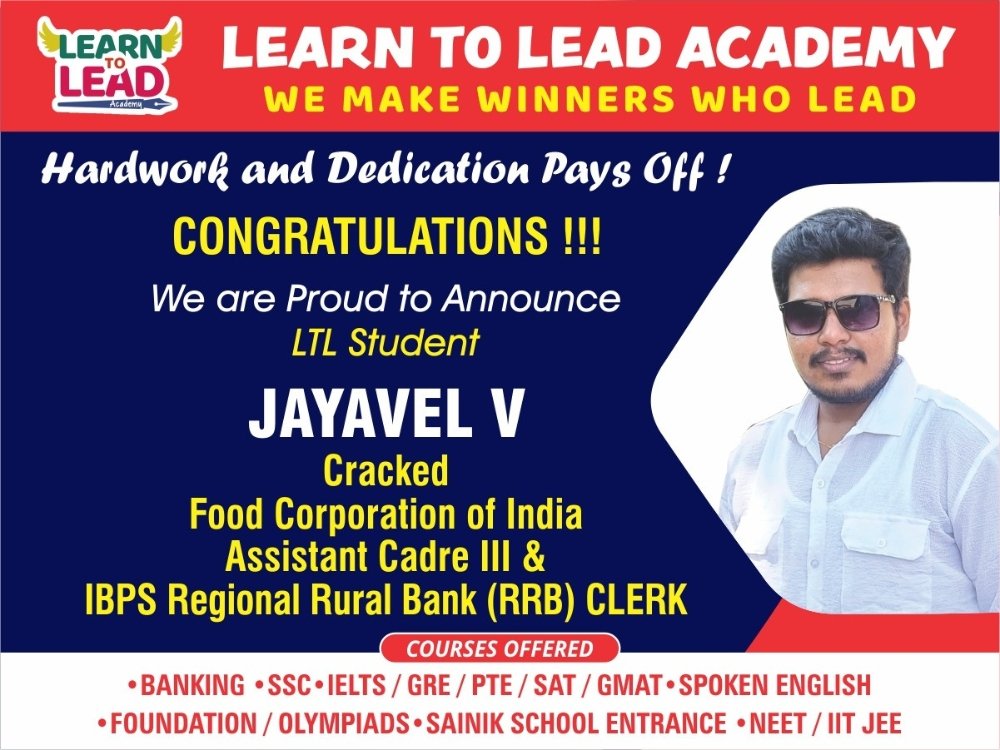 GAYATHRI NI thank learn to lead academy for the wonderful coaching that helped me to clear IBPS PO and IBPS CLERK 2024-25. The staffs are very supportive, and they guided me well throughout my preparation. It was a great experience at Learn To Lead Academy Udumalpet . Their teaching methods are really great. Thankyou