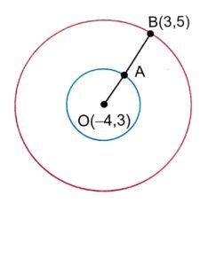 12. Two concentric circles are centred at O(-4, 3). The ratio of the area of inner circle to that of the outer circle is 1:9. Points A and B lie on the boundaries of the inner and outer circle, respectively, as shown in Fig.