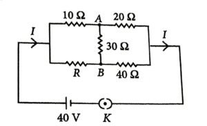 17. The value of current I in the electrical circuit as given below, when potential at A is equal to the potential at B, will be _____ A.