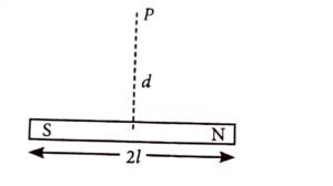 13. A bar magnet has total length 2l = 20 units and the field point P is at a distance d = 10 units from the centre of the magnet. If the relative uncertainty of length measurement is 1%, then uncertainty of the magnetic field at point P is