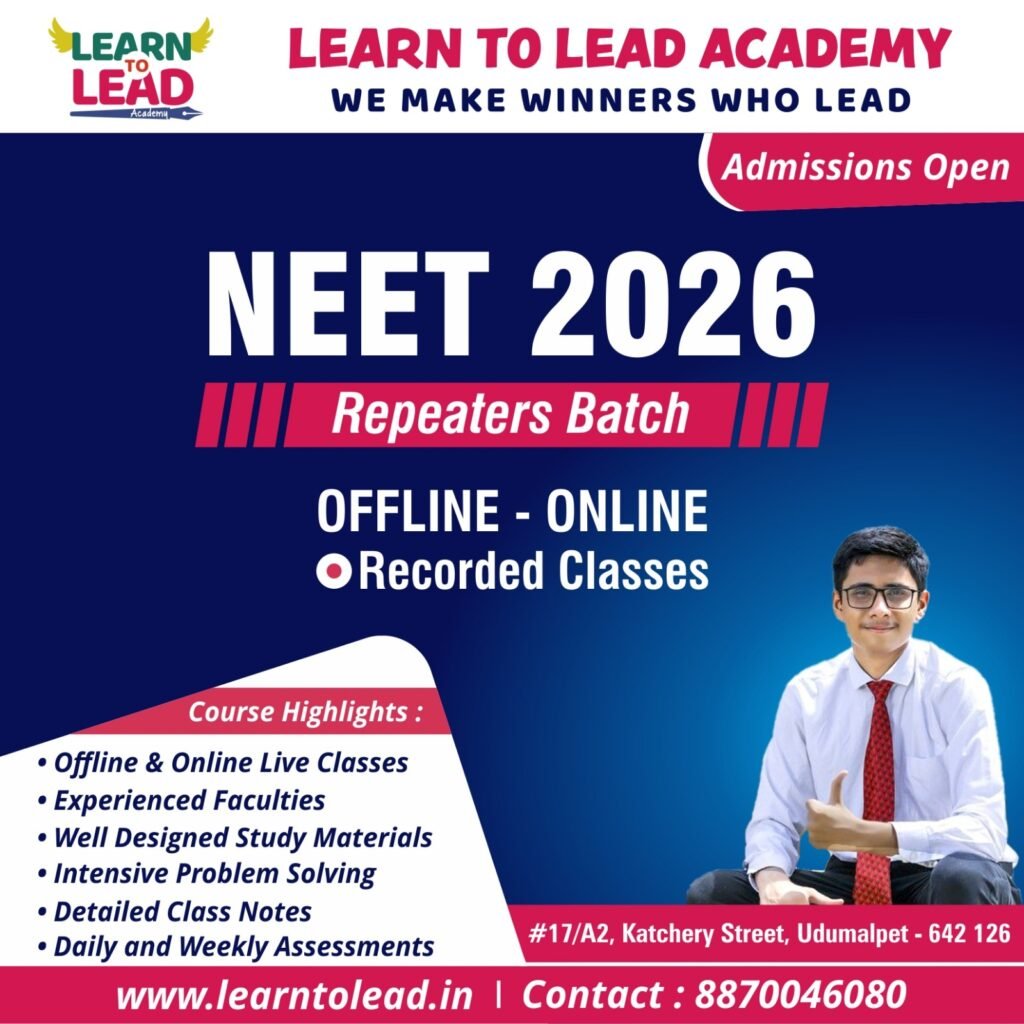 Learn to Lead Academy, located in Udumalpet, is a leading institute that provides coaching for the National Eligibility cum Entrance Test (NEET). As the only academy in Udumalpet that provides NEET coaching, Learn to Lead Academy has established itself as a reliable and trusted coaching center for medical aspirants.